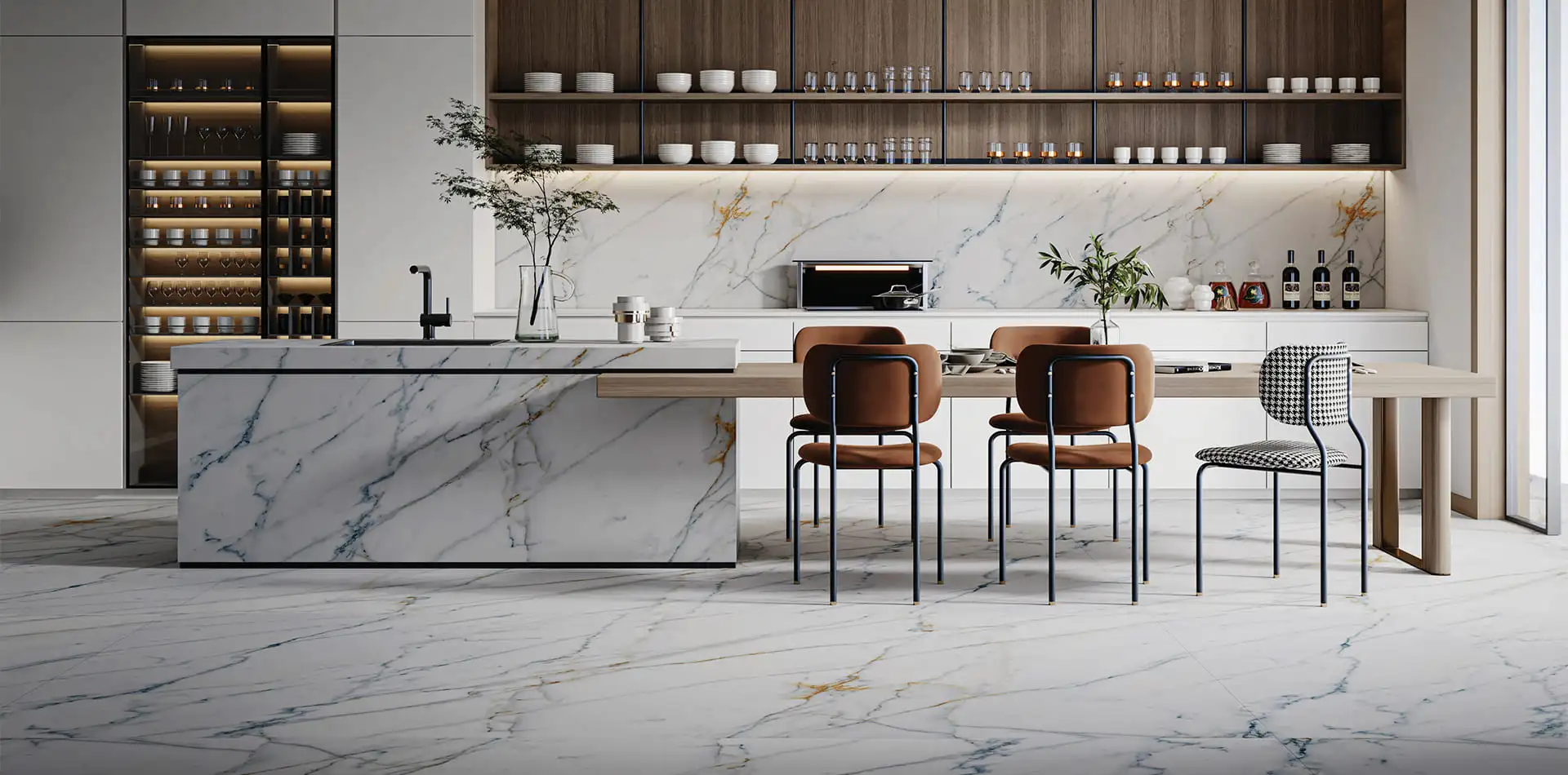 최고의 도자기 타일 제조업체 KITO의 도자기 슬래브 칼라카타 골드 시리즈 주방 백스플래시 아이디어, 벽 패널 선택 방법 KITO 오리지널 스톤 뷰티 록 시리즈는 고전적이고 우아하며 정확하게 매치된 천연 흰색 대리석 패턴을 선택합니다. 3D 유약 분사 기술과 다층 인쇄 기술을 통해 뛰어난 입체감과 자연석에 가까운 사실적인 촉감을 구현했습니다. 다양한 규격과 두께를 선택할 수 있으며, 무한한