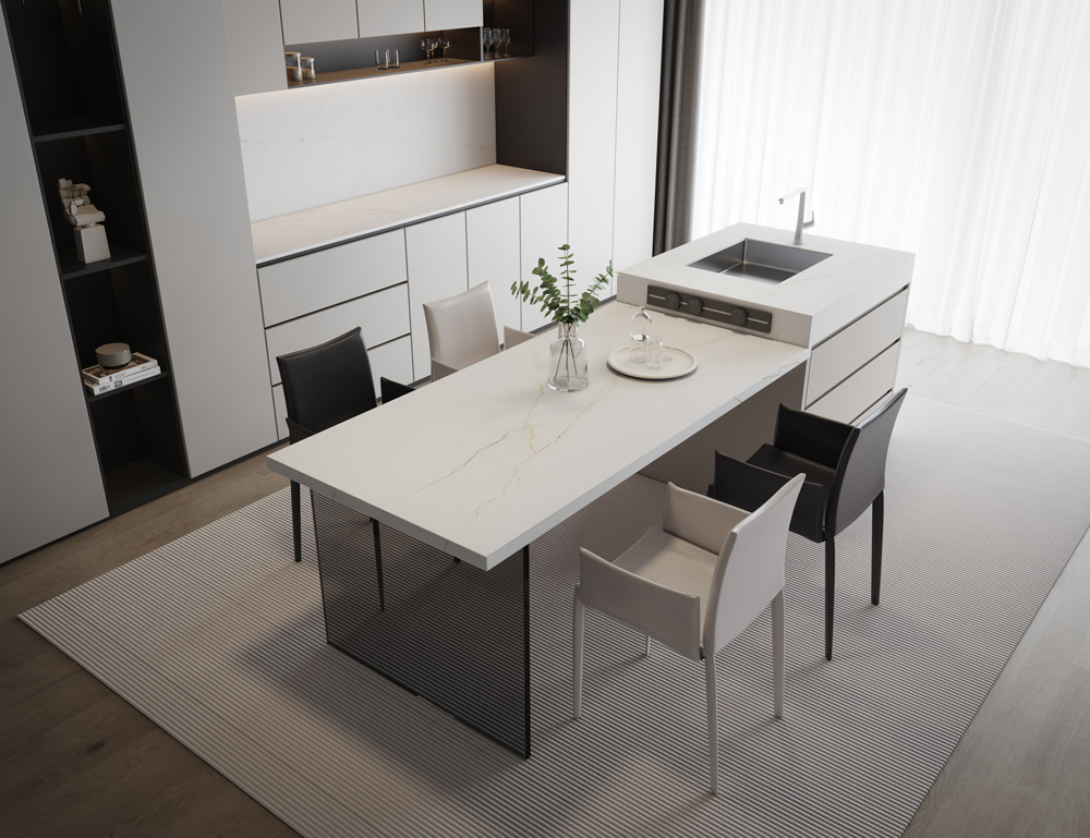 이탈리아 북부의 유서 깊은 도시 카라라에서 생산되는 귀한 아푸아노 오로는 부드럽고 따뜻한 흰색 바탕에 우아하고 섬세하게 흐르는 듯한 무늬가 특징입니다. 표면은 꿀처럼 은은한 황금빛 광택을 띠며, 재결정된 대리석 줄무늬와 어우러져 독특하고 따뜻하며 세련된 색감을 만들어냅니다. 이는 최고급 석재가 지닌 고귀함과 시대를 초월하는 우아함을 고스란히 담고 있습니다.