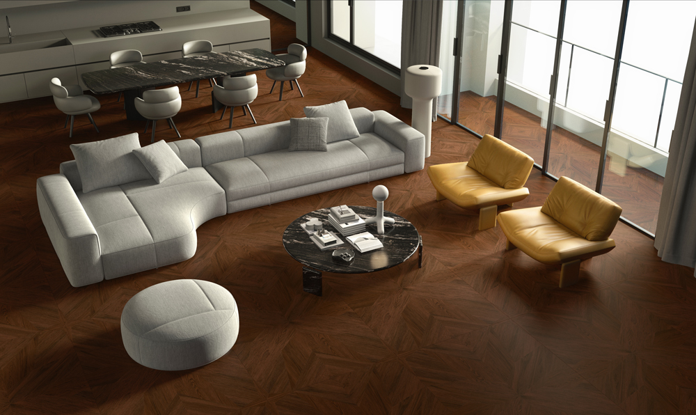 정통 이탈리아 디자인 DNA를 담은 Majestic Oak 시리즈는 자연스러운 나뭇결과 예술적 미학을 절묘하게 조화시켰습니다. 짙은 버건디와 스모키 브라운 톤이 세로 줄무늬와 기하학적인 인레이를 통해 어우러져 역동적이면서도 세련된 시각적 리듬감을 선사합니다.