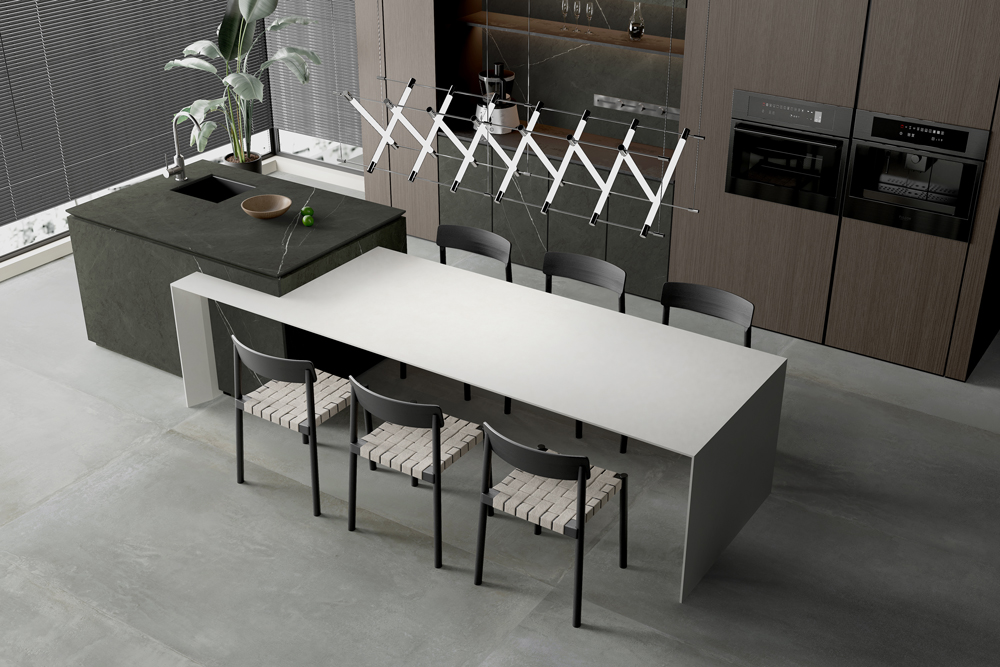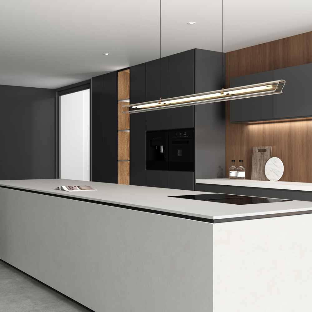 정교한 2차 가공을 통해 탄생한 이 대형 슬래브( 3200x1600x12mm )는 세련된 콘크리트 외관 에 은은한 석재 질감을 더했습니다. 미세 시멘트에서 영감을 받은 균일하고 조화로운 질감은 미니멀한 미학과 따뜻한 촉감을 동시에 선사합니다.