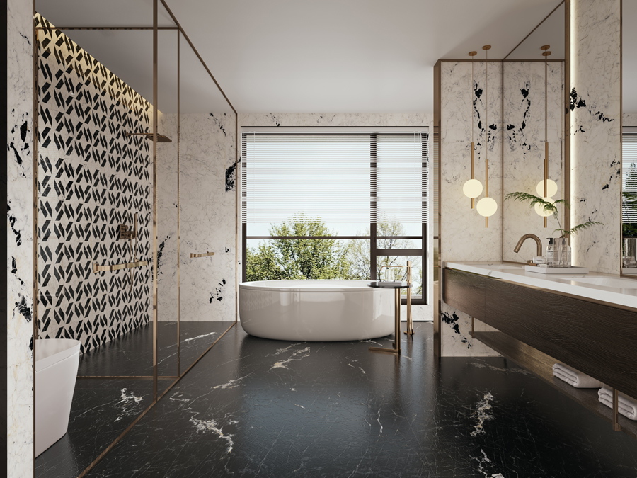흑백 두 가지 색상으로 제공되는 파 오나제토 벽타일 컬렉션은 넓은 면적에 적용하여 차분한 수묵화 분위기를 연출하거나, 대비되는 패턴을 조합하여 시선을 사로잡는 포인트로 활용할 수 있습니다. 다양한 디자인 스타일에 자연스럽게 어우러집니다.