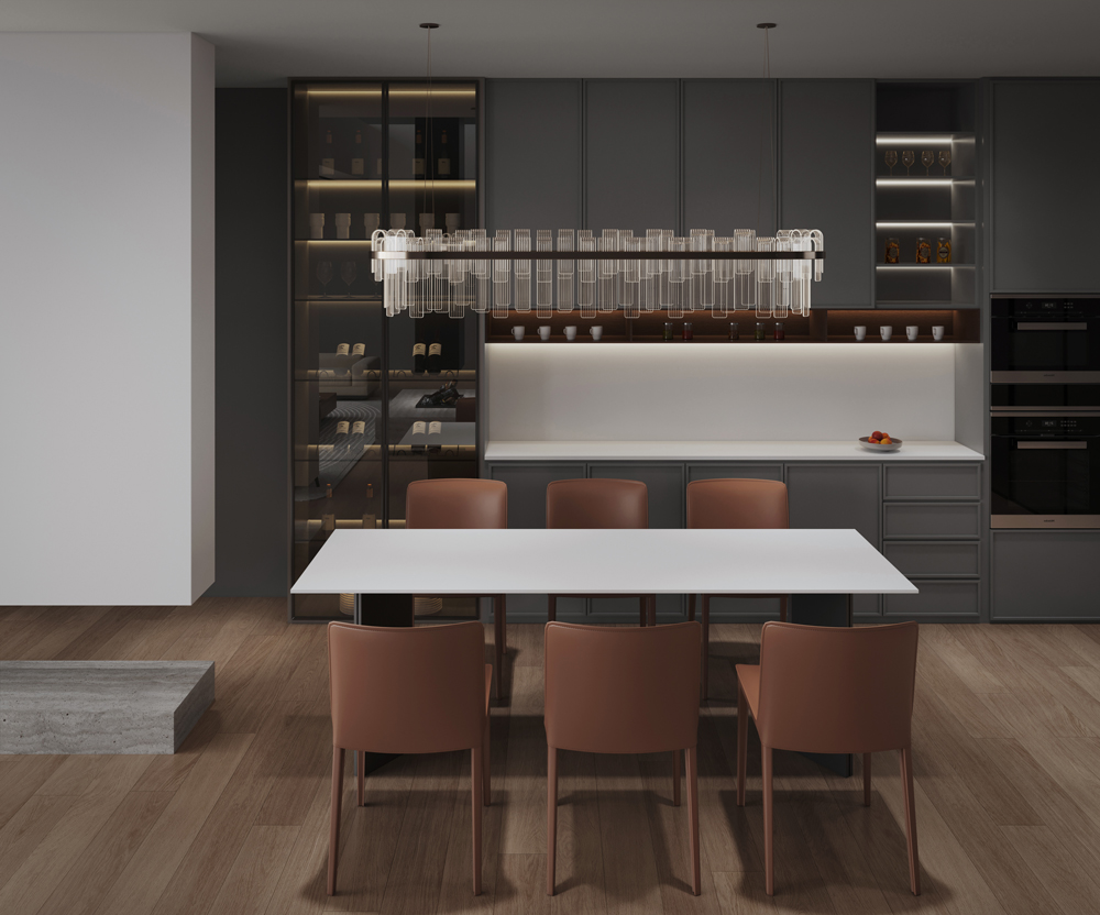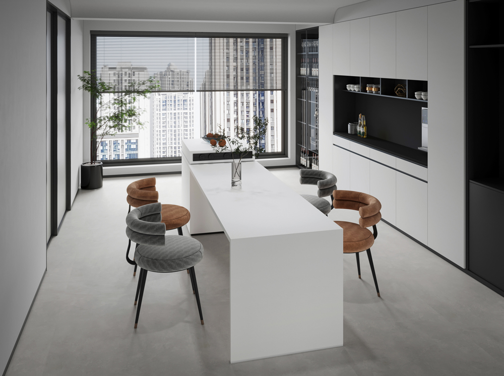 KITO 퓨어 화이트 슬래브는 주방 섬에 딱 맞는 소결석 조리대 입니다.